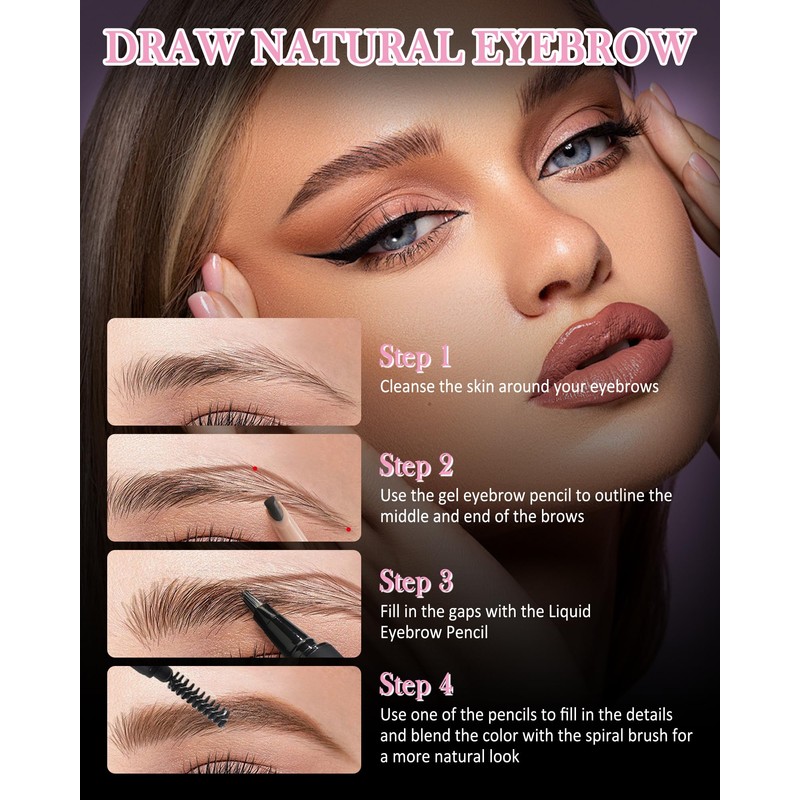 Package Include: 2 * Gel Eyebrow Pencil / 1* Microblading Eyebrow Pen / 1* Frosted Sponge