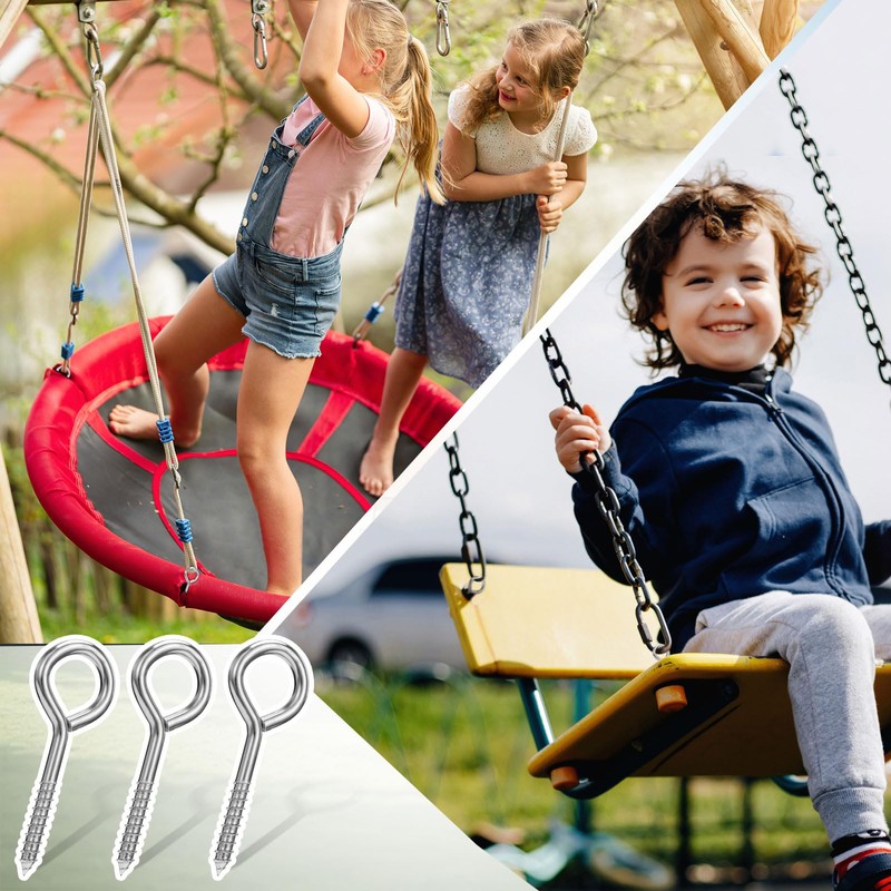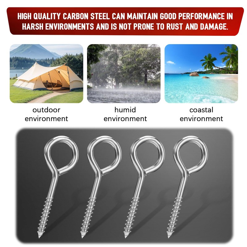 - EASY TO INSTALL: The simple structure of these eye bolts screw in hooks makes the installation process quick and convenient, without the need for complicated tools or professional skills. Ordinary people can also easily install screw eyes at home to hang items such as hammock swings.
