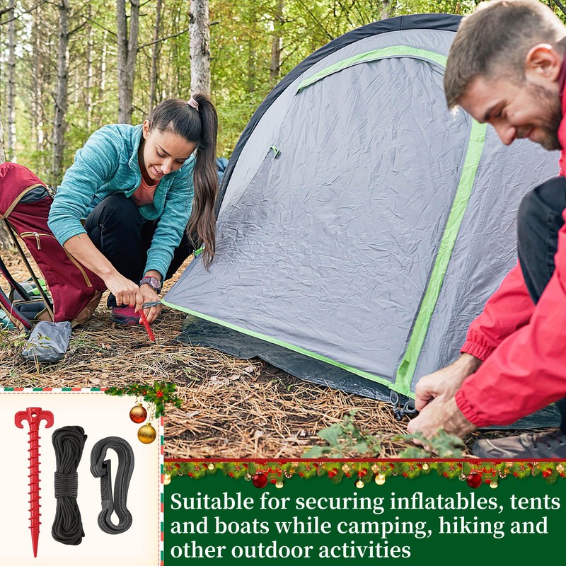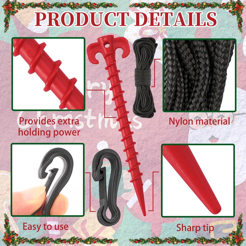 AUGSUN 27 Pieces Plastic Inflatable Stakes Set, Include Tent Stakes, Tethers Ropes and Hooks Heavy Duty Garden Yard Stakes for Christmas Outdoor Decorations (Red)