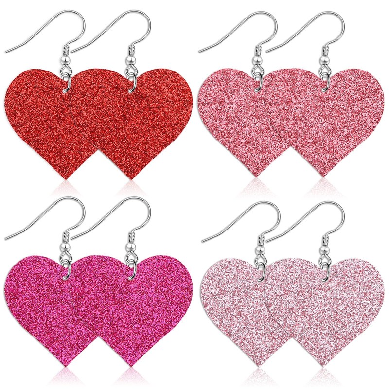 - Package Content: With 4 styles of Valentines Day heart leather earrings,enough for you to wear on Valentines Day,can also be shared with your friends, glitter heart earrings can be used to create a unique style, make you charming