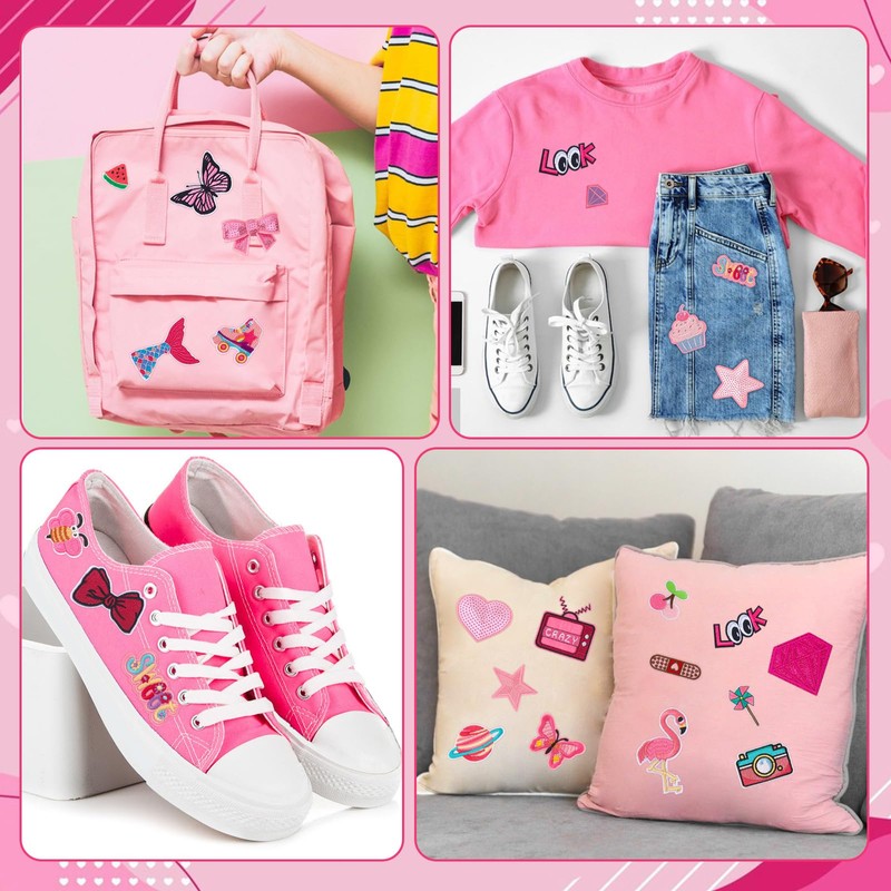 - Wide Application These pink sew on patches are great for DIY motif clothing repair accessories decoration, the pink applique patch can be applied to dresses, skirts, bags, jeans, hats, shoes, shirts, socks, etc. In addition, the western iron on patches are suitable for arts, craft projects, scrapbooks and other crafts to decorate or make up fractions
