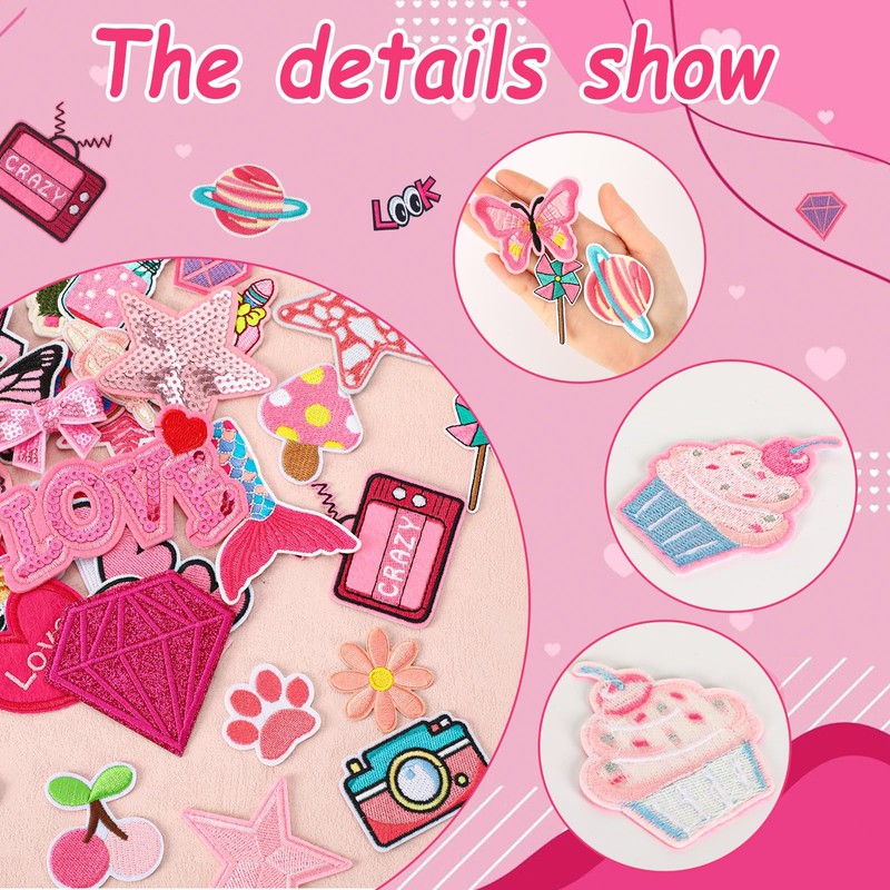 - EXQUISITE CRAFTSMANSHIP Our pink embroidered patches are made of high quality embroidered cotton material with hot melt adhesive on the back for easy ironing or sewing. (The plastic on the back is glue, please do not tear off)