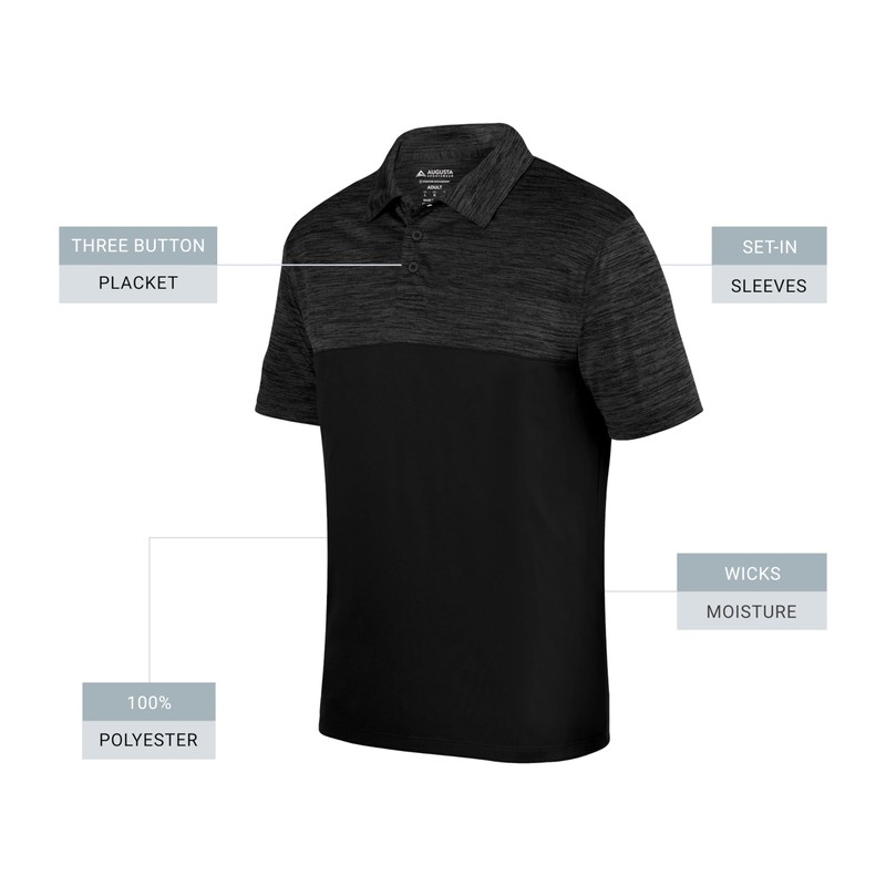 Augusta Sportswear Men's Standard Shadow Tonal Heather Polo, Black, 3X-Large
