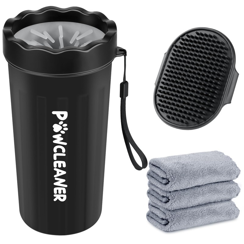 - Easy to UseTo clean your dog's paws with the dog foot cleaner, just put the muddy paws into the cup and twist it a few times. Wipe with the matching towel after cleaning to prevent wet dog paws from dirtying the floor.