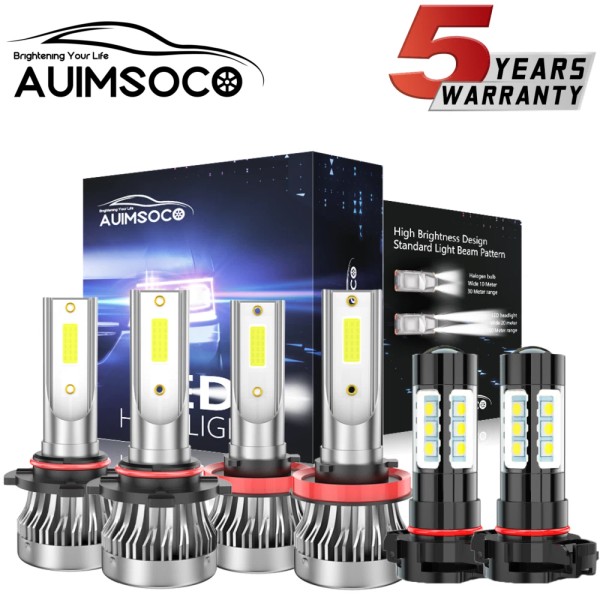 AUIMSOCO For Chevy Silverado 1500 2500 HD 2007-2015 6000K LED Headlights Fog Lights Bulbs