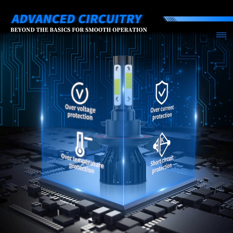 - High brightness: The latest cob with 6500K cool white LED chip; 200% brighter than the existing halogen headlights. Advanced technology ensures perfect beam patterns without any black spots.