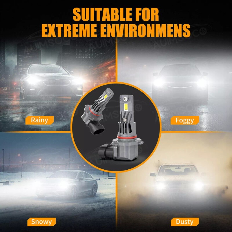【Better Driving Experience】The 9005 LED bulbs increase 300% brightness and 100% view, focus beam pattern illuminates reveal road signs, without blinding other drivers