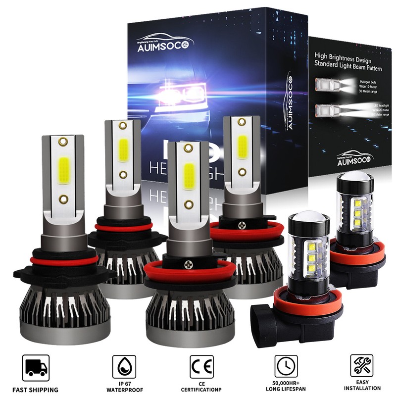 AUIMSOCO For Toyota Highlander 2014-2019 6X LED Headlight+Fog Light Bulbs Combo Kit 6500K