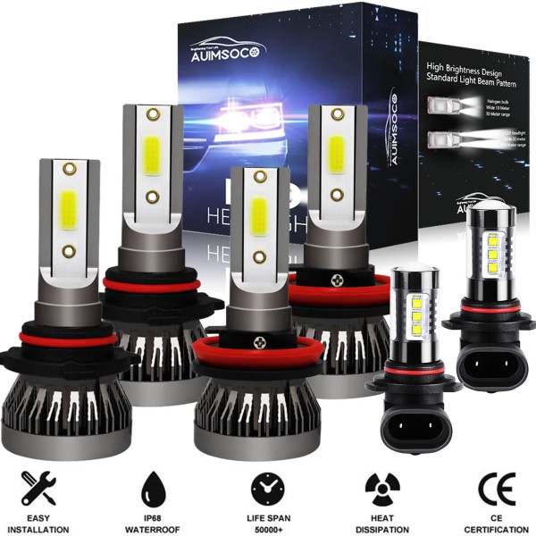 AUIMSOCO White For Ford Escape 2013-2016 LED Headlight Hi/Low Fog Light Bulbs Combo Kit