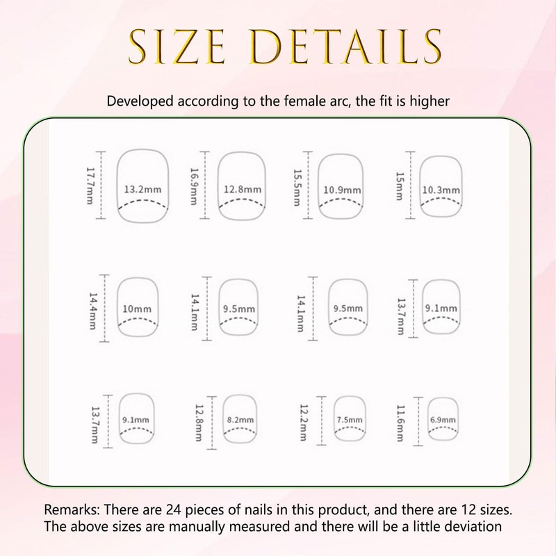 5.【Application tips】 Ensure your nails are clean and dry before applying press-on nails. Jelly adhesive makes the nails reusable. For longer-lasting results, we recommend using nail glue