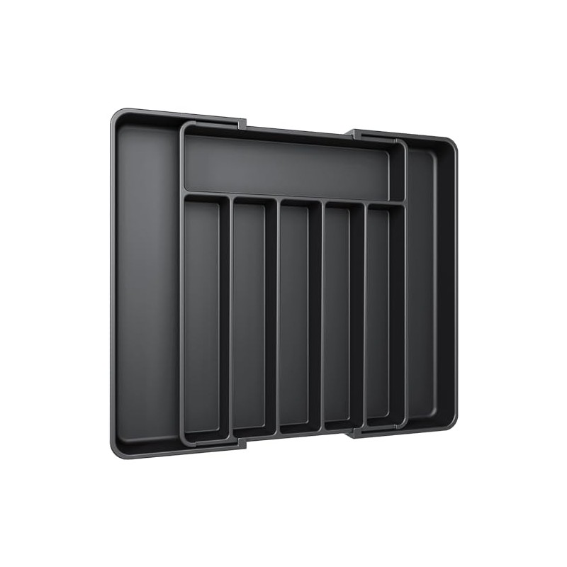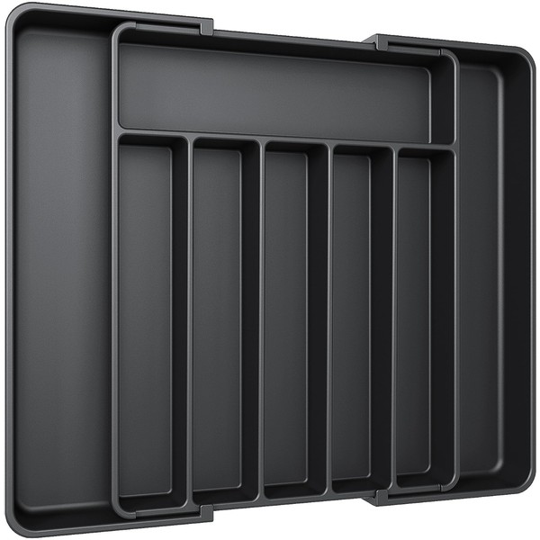 AUJEN Cutlery Tray for Drawers, Removable Cutlery Tray for Drawers, Practical Drawer Insert, Expandable Drawer Organiser, Efficient and Versatile Kitchen Organiser, Large, Black