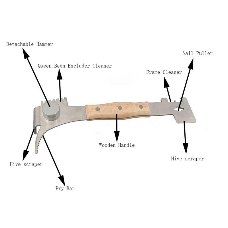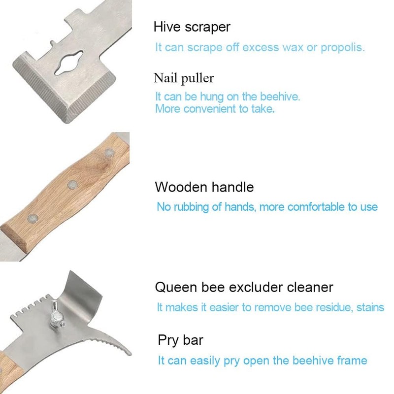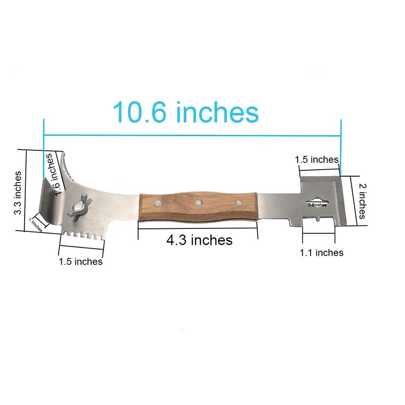 • VERSATILE DESIGN: With four functions on one end and three on the other, this multipurpose steel hive tools is perfect for any beekeeping task. Use it to pry, scrape, clean, and more.