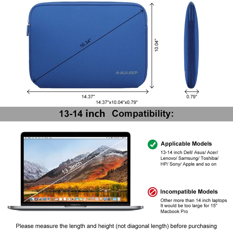 AULEEP Laptop Sleeves, 13-14 Inch Neoprene Notebook Computer Pocket Tablet Carrying sleeve/Water-Resistant compatible laptop sleeve for Acer/Asus/Dell/Lenovo/HP, Dark Blue