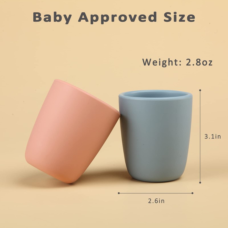 - 2 Pack- We have prepared 2 silicone drinking cups for your baby to use from 6 months to 3 years old. Simple design, stylish colors, perfect gift for baby led weaning.