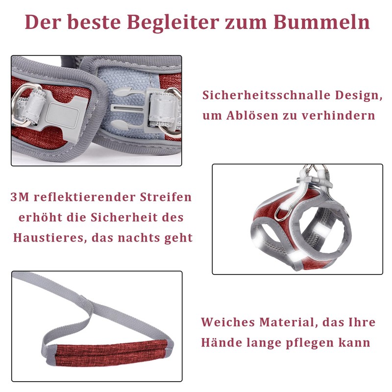 Auliuse Dog Vest Harness, Dog Harness and Llead Set, Reflective Harnesses for Small Dogs, Vest Harness for Cats/Dogs, Adjustable, Breathable