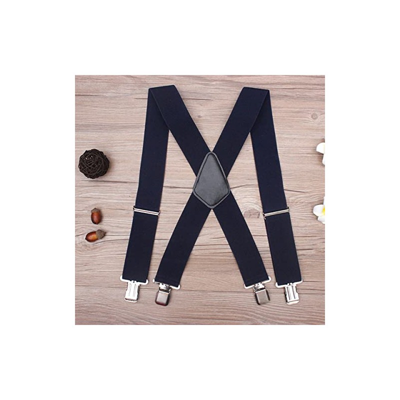 Men's X Shape Braces Adjustable and Elastic Suspenders 50MM WIDTH - Deep blue.