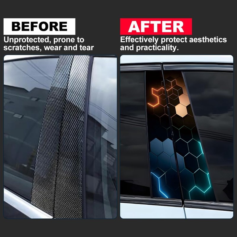 - Comprehensive Protection, Enhancing Vehicle Value: Beyond its decorative appeal, our personalized honeycomb car center pillar stickers provide robust protection against scratches, collisions, and paint damage. This dual function of decoration and protection helps maintain your car's appearance