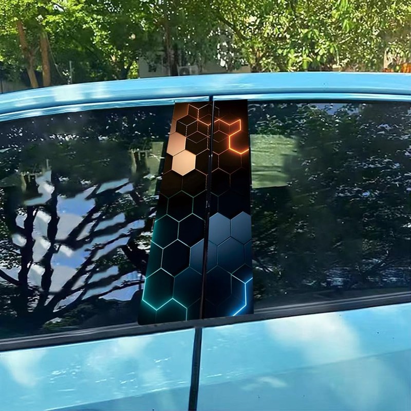 AuMoHall 2 PCS Honeycomb Car Center Pillar Stickers Personalized Hexagon Pattern B Pillar Sticker Car Vinyl Decals for Vehicle Exterior Decoration, Orange with Blue