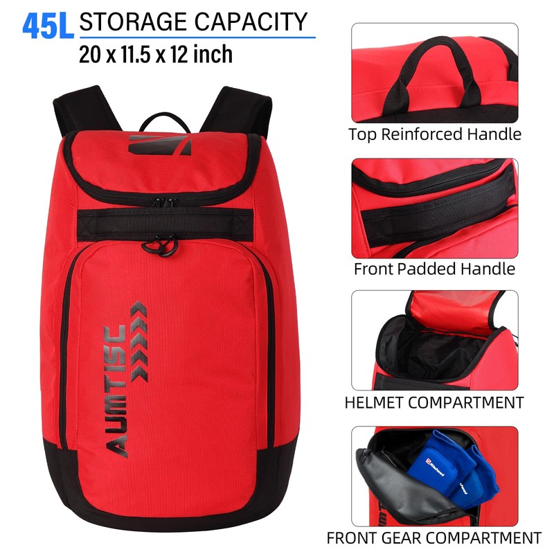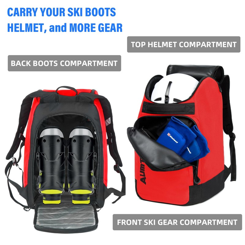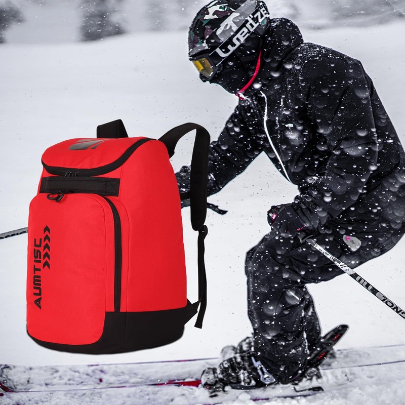 AUMTISC Ski Boot Backpack Lightweight Ski Boot Bags for Snowboarding Travel Luggage 45L Red
