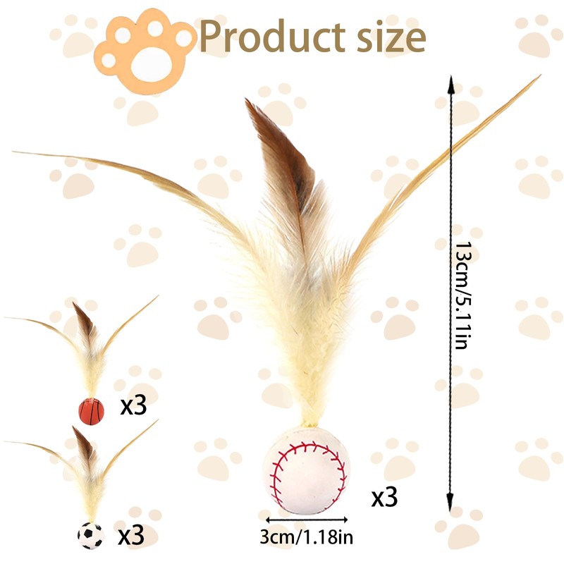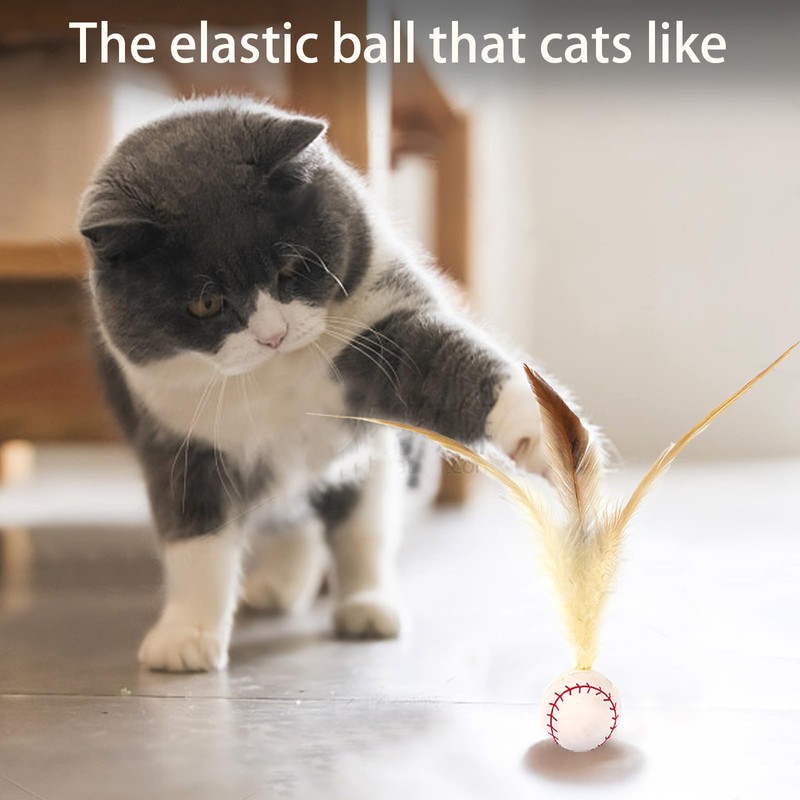 Exceptional elasticity with random jumps: cat toy ball made of high-quality rubber material that can bounce randomly on the floor. When your cat hits the ball, it jumps in all directions and mimics the movement of the prey. This randomness keeps your cat by the bar and makes for a great workout while chasing the ball - Fun feather design: interactive play ball for cats all have light and flexible feather tails, such as live prey, cats are naturally attracted to the movement and texture of the feathers. When the ball rolls around, the feathers flutter and add more joy to your cat