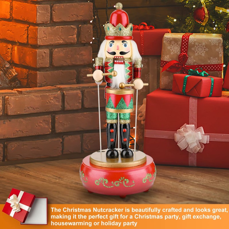 Auniq Nutcracker Music Box, 38 cm Movable Music Box, Handmade Wooden Nutcracker, Music Nutcracker, Christmas House, Holiday Decoration, Drummer Soldier (Red)