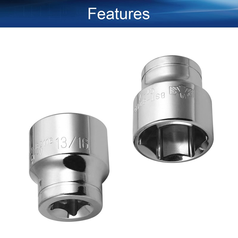 - 【Feature】- The 6-point Impact Socket is made of Chrome vanadium steel which is strength and durability;Mirror chrome plated finish can resist corrosion and easily wipes clean