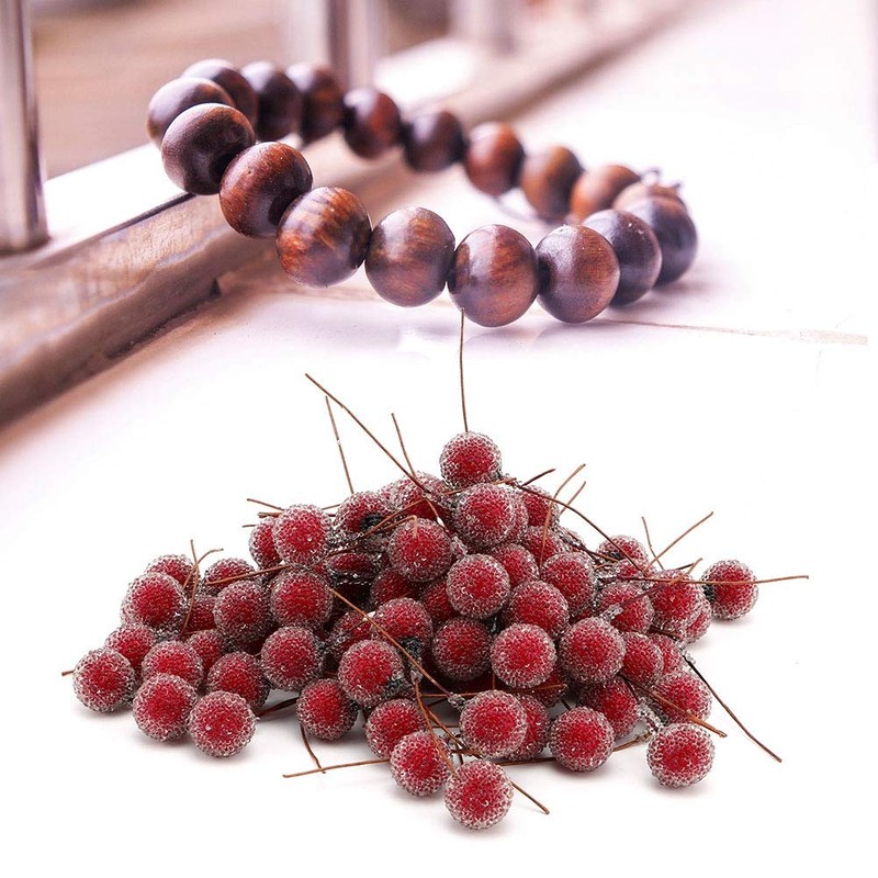 AUNMAS Artificial Berry Flower 100pcs Mini Frosted Fruit Holly Berries for Home Christmas Tree Garland and Table Decorations