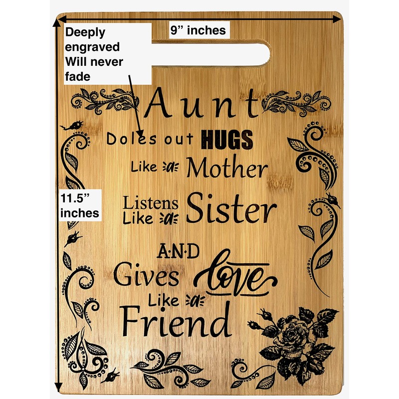 Aunt Gift - Bamboo Cutting Board Design Aunt Gift Birthday Christmas Gift Engraved Side For Décor Hanging Reverse Side For Usage (8.75x11.5 Rectangle)