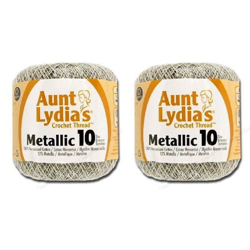- Price is for 2 skeins of Aunt Lydia's Crochet Cotton Metallic Size 10 for a total of 200 yards crochet thread