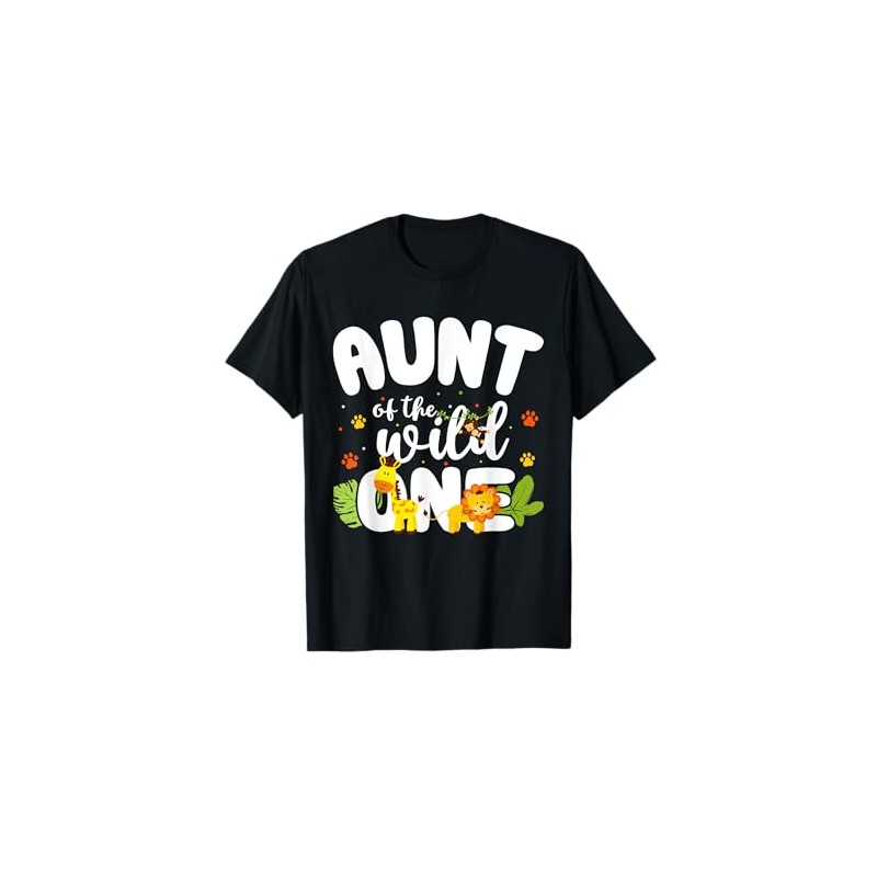 - Aunt of the Wild One Zoo Safari Birthday Party T Shirt featuring a the phrase Aunt of the Wild One with a Lion, Giraffe, Elephant, zebra and Elephants, Crocodiles, leopard. Check out our brand for more kids and toddlers Zoo themed birthday party shirts!