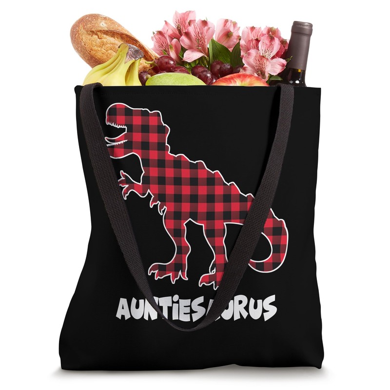 Auntiesaurus Red Plaid Matching Family Christmas Auntie Trex Tote Bag