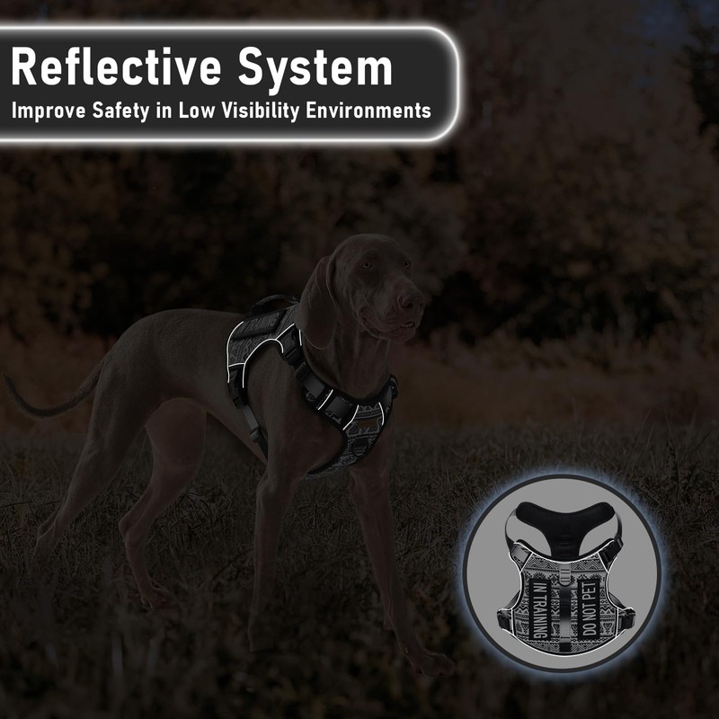 Super Reflective- The reflector points are very bright. Having it in our harness that reflects light gives your dogs a lot of safety that eases your anxiety when you are chasing them barefoot down the road in the dark, you can spot them right away. It is really safe for nighttime walking.