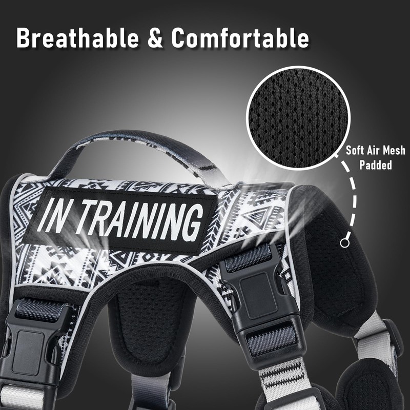 4-Way Fully Adjustable- Our adjustable harness has 4 easy adjusting straps. You can use its 2 neck straps and 2 chest straps to create a perfect fit for your dog. It is easy to adjust to a larger size as he/she grows. No worries about slipping out or choking.