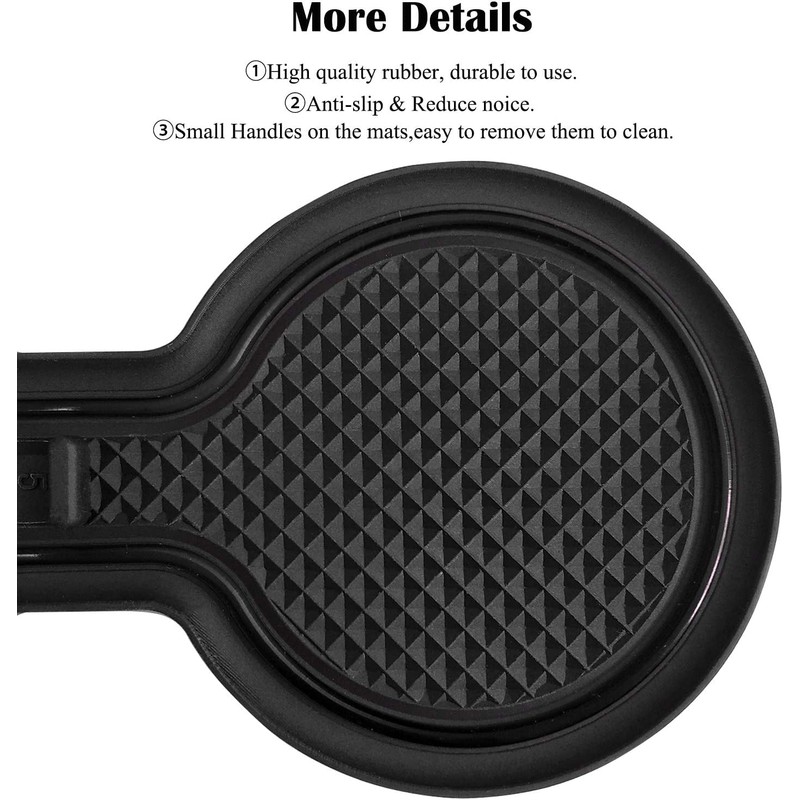 - 2【High Quality】Made of high quality rubber, durable to use. Washable, Anti-dust, Anti-slip. Adds a nice pop of color. Dress up the nice interior. Makes cups in drink holder quiet and prevents rattling around.