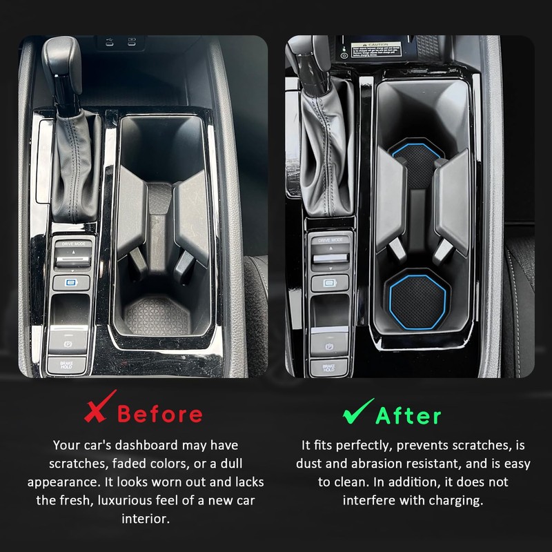 - [Praticle and Decorate]: This liner mats fit your car cup holders, door pockets and consoles perfectly, making the interior no dust and no scratch.It also decorates your vehicle well and makes the car interior more premium.