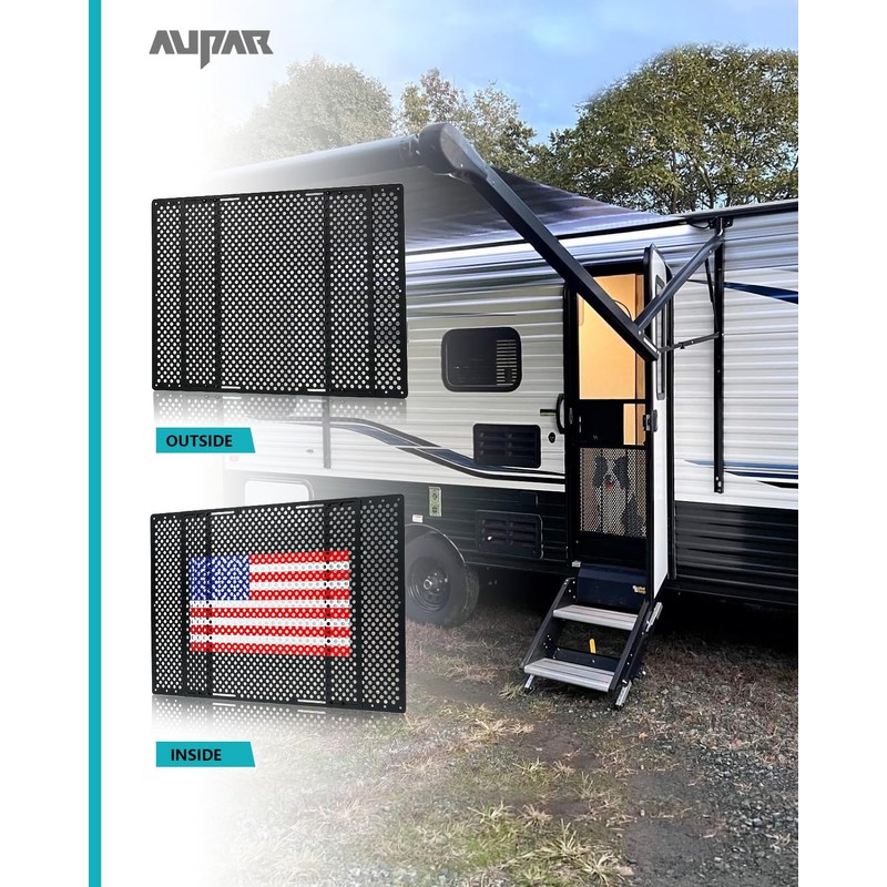 Aupar Aluminum Alloy RV Entry Screen Door Grille Adjusts from 22"- 31.5", Adjustable RV Door Screen Protector, Flag