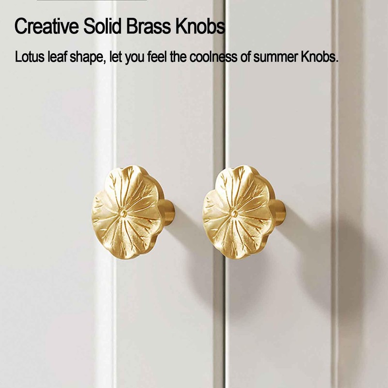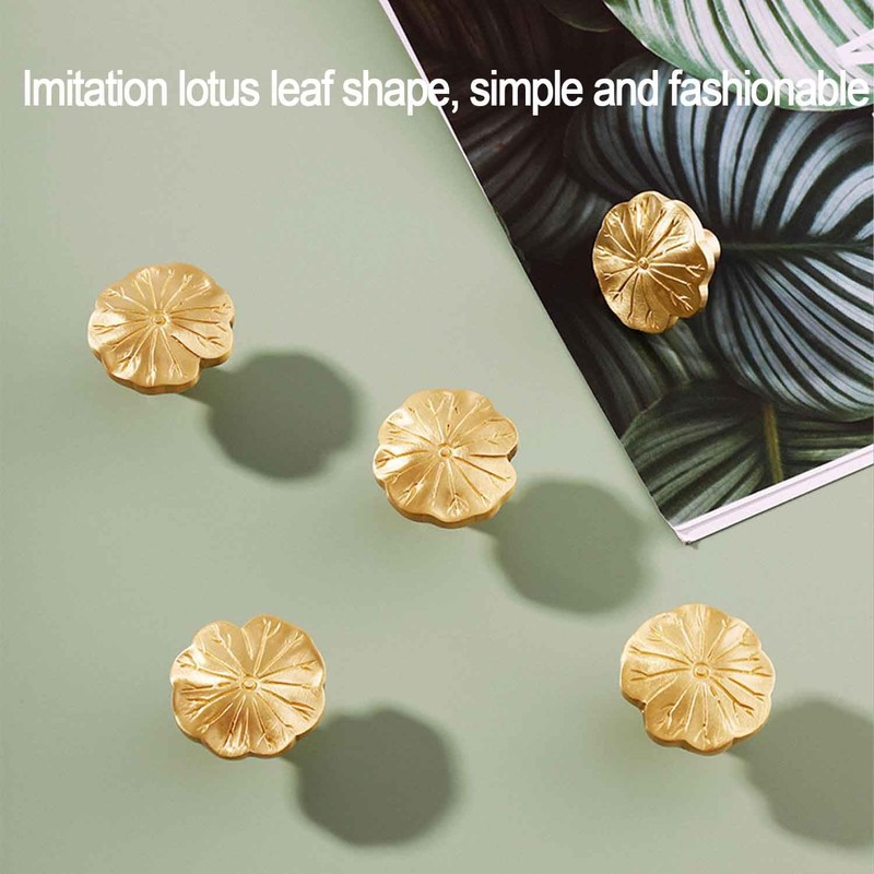 AUPKROT JSBWSFA 4PCS Lotus Leaf Shape Cabinet Knobs, Brass Drawer Knobs Gold Cabinet Knob Dresser Knob Gold Kitchen Pull Golden Drawer Handle Unique Cabinet Pull Handle Hardware Kitchen Handles