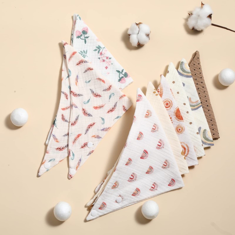 - 1. Comfortable and very absorbent: baby triangular scarf is very absorbent impermeable, the clothes stay dry, keep your baby dry for a long time to help your baby avoid rash and reflux.