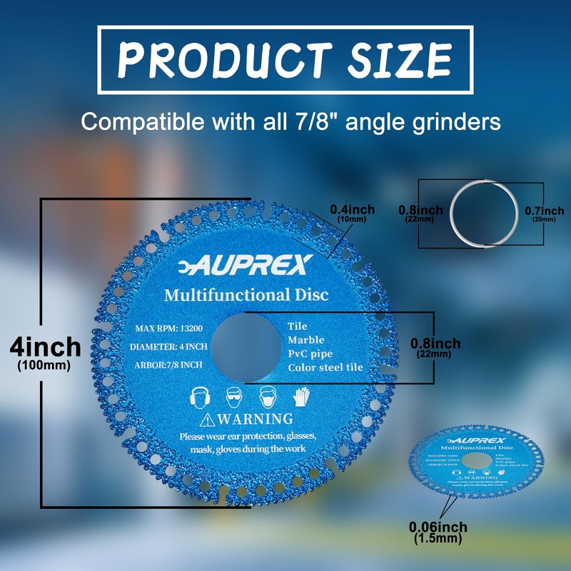 • Specification: Diameter-4”, thickness-0.6”/1.5mm, inner hole-0.86”/22mm, Max RPM-13,200, compatible with all 7/8” angle grinders, 5 packs.