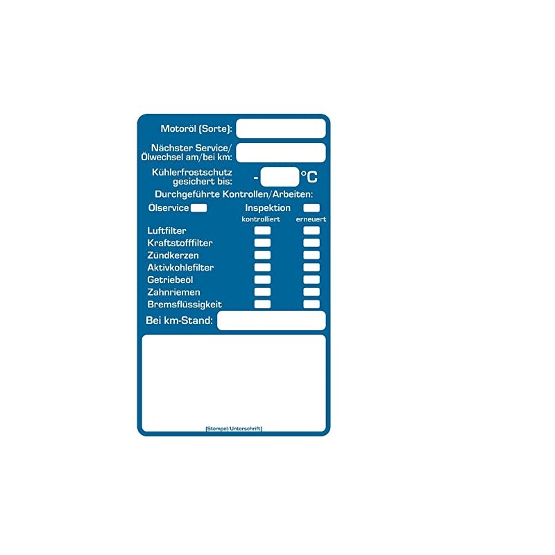 - Selection: 25 x Inspection Stickers: Next Service / Oil Change On/Km, Antifreeze, Inspection Performed / Works, Oil Service, Inspection etc.