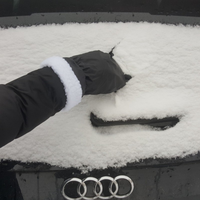 High Quality handheld ice scraper for removing frost, ice and snow from car windows with water repellent and soft lined protection glove, to keep the hands warm and dry.