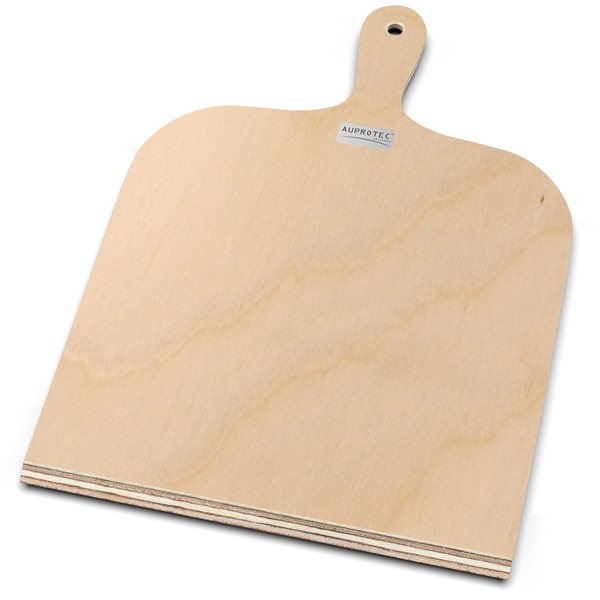 - The durable pizza peel from the AUPROTEC exclusive series is available in various sizes and designs. The pizza plate is made from approx. 6 mm thick, multi-layered birch wood and therefore particularly robust and dimensionally stable