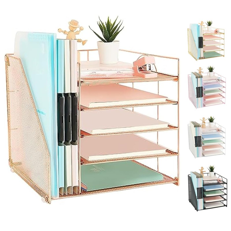 - ✅ EASY TO ASSEMBLEL: 5 Trays and 1 File Holder. PET anti-slip feet to prevent it from sliding or scratching surfaces. Using a tidy desktop organizer can better improve work efficiency. Great to organize your documents, magazines, letters, files, folders, mail and much more.