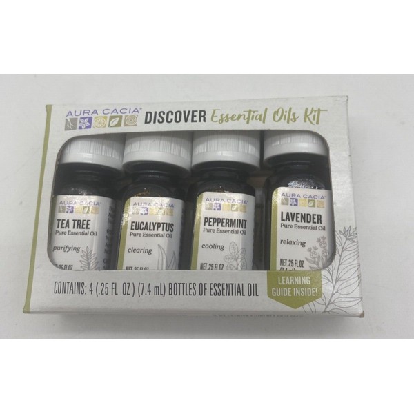 Aura Cacia Discover Essential Oils Kit 4 Pack Bottles 0.25 oz NEW AuraCacia oil