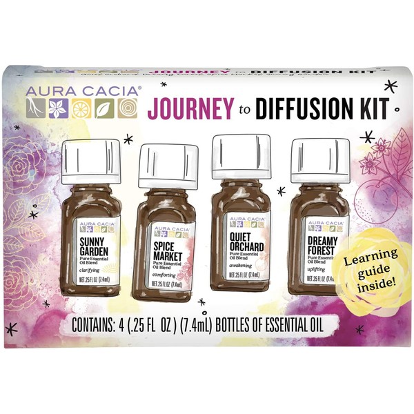 Aura Cacia Journey to Diffusion Essential Oil Kit | GC/MS Tested for Purity | 4 Bottles 7.4ml (0.25 fl. oz.)
