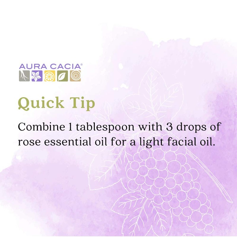 Product Features: \- Absorbability – Grapeseed oil is fairly stable and nearly odorless. It is notably high in linoleic acid, an essential fatty acid. This contributes to its absorption and weight. \- Nourishing – Grapeseed oil contains an excellent balance of skin-supporting compounds like oleic, palmitic, and stearic fatty acids. \- Protecting – Aura Cacia Grapeseed oil is rich in vitamin E, which promotes moisture that protects the skin. \- Penetrating – Grapeseed oil’s light and absorbent feel makes it an ideal choice for massage as it absorbs quickly. \- Versatile – Grapeseed oil is lightweight and affordable – it can be used on its own or to dilute other fatty oils. \- Sustainable – Aura Cacia Grapeseed oil comes from grapes that are thrown away during the wine making process. Additional Features: \- 100% Pure Botanical Ingredients \- No Synthetic Colors or Fragrances \- Not tested on Animals \- Paraben & Petroleum Free \- Non-GMO \- 16 ounces (473 ml) Ingredients: Vitis vinifera (Grape) Seed Oil, Tocopheryl Acetate (Vitamin E Acetate). SUGGESTED USES Quick Tip: Combine 1 tablespoon with 3 drops of rose essential oil for a light facial oil. Recipe: Eucalyptus Vapor Rub Description: A penetrating vapor rub Ingredients: \- 12 drops Aura Cacia Eucalyptus Essential Oil \- 12 drops Aura Cacia Lavandin Essential Oil \- 1 oz Aura Cacia Grapeseed Oil \- 1 oz Aura Cacia Jojoba Oil \- 2-oz Aura Cacia Amber Glass Bottle with Writable Label Directions: Combine jojoba and grapeseed oils in glass bottle. Add essential oils, replace lid and shake gently until contents are well blended. Into the palm of one hand, dispense a small amount of the mixture and gently rub into targeted areas. Cover with warm towel or heating pad, if desired.
