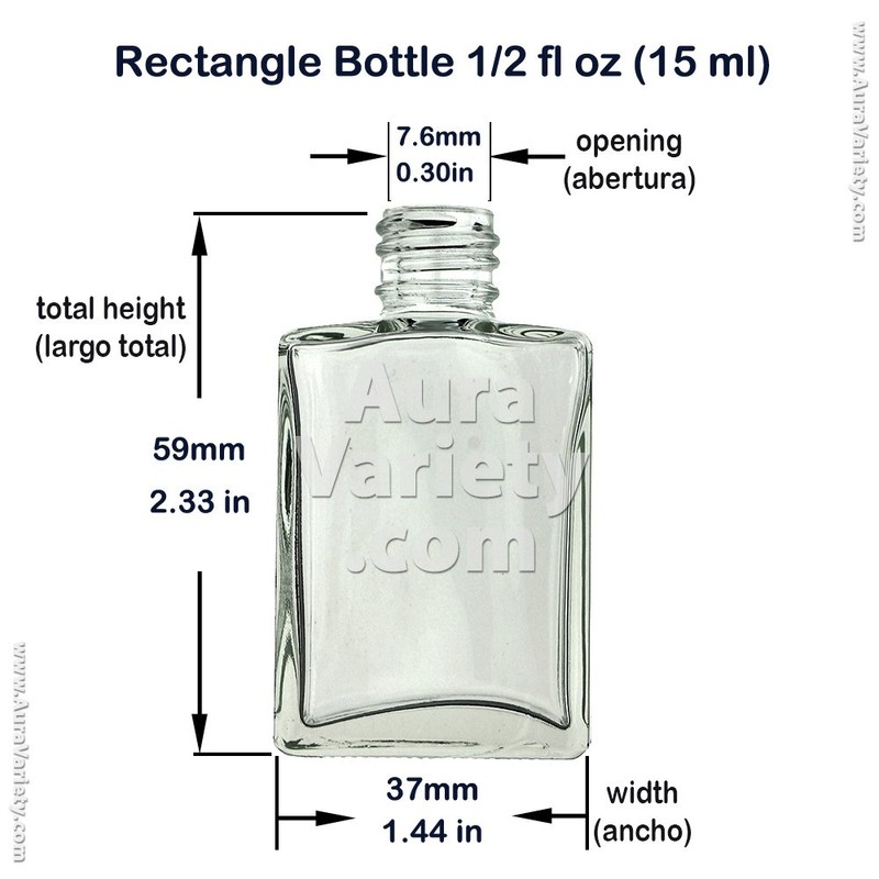 AURA VARIETY 144 Pack 1/2 OZ 15 ml Rectangular REFILLABLE Clear Glass Bottle with Black Cap (PERFUMES, Oils, Aromatic Blends, Bath and Body)