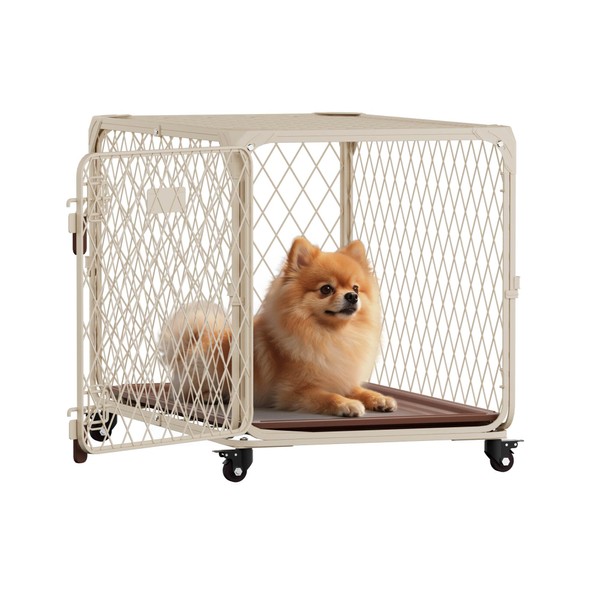 - Strong, Safe & Comfortable Dog Crate - Aurapaws Dog Crate is made of eco-friendly, odor-free metal with Patented high-strength diamond mesh for extra bite resistance. diamond-shaped mesh panels that prevent pinching and keep jaws and paws safe, while rounded corners eliminate sharp edges for worry-free use. This dog cage features reinforced corner bumpers to prevent injuries, plus four 360° lockable wheels for easy movement and stability.