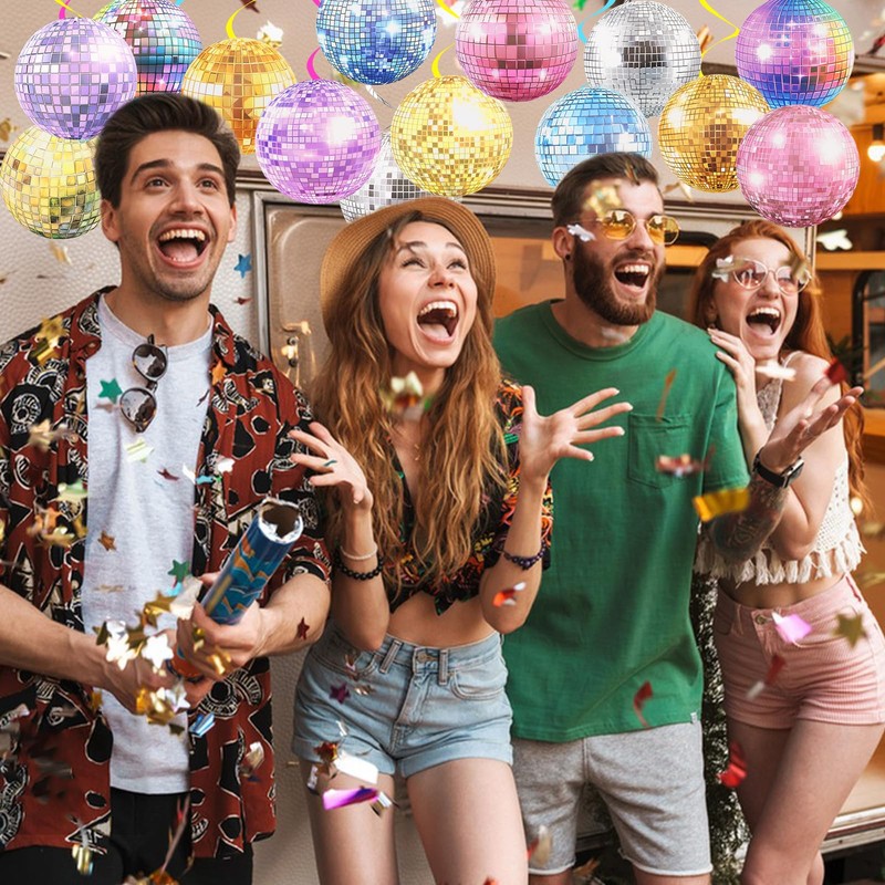 - Widely used applications: these foil spiral hanging swivels can be hung on the ceiling or in other places such as windows, mantelpieces, overhangs, doors, arches, branches on trees, etc. They are suitable for hip hop parties, retro parties, rock parties, 80s disco parties and so on.