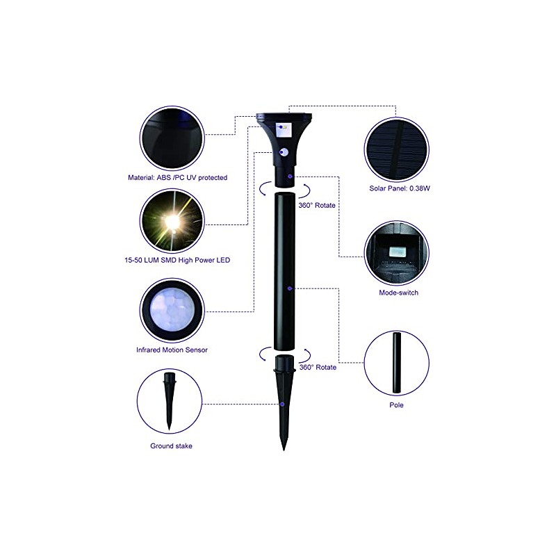 - 【Easy installation & multiple application scenarios】It only takes a few minutes to complete the assembly of the motion sensor outdoor lights, which can bring bright light to your path, yard, garden, driveway, lawn, etc.